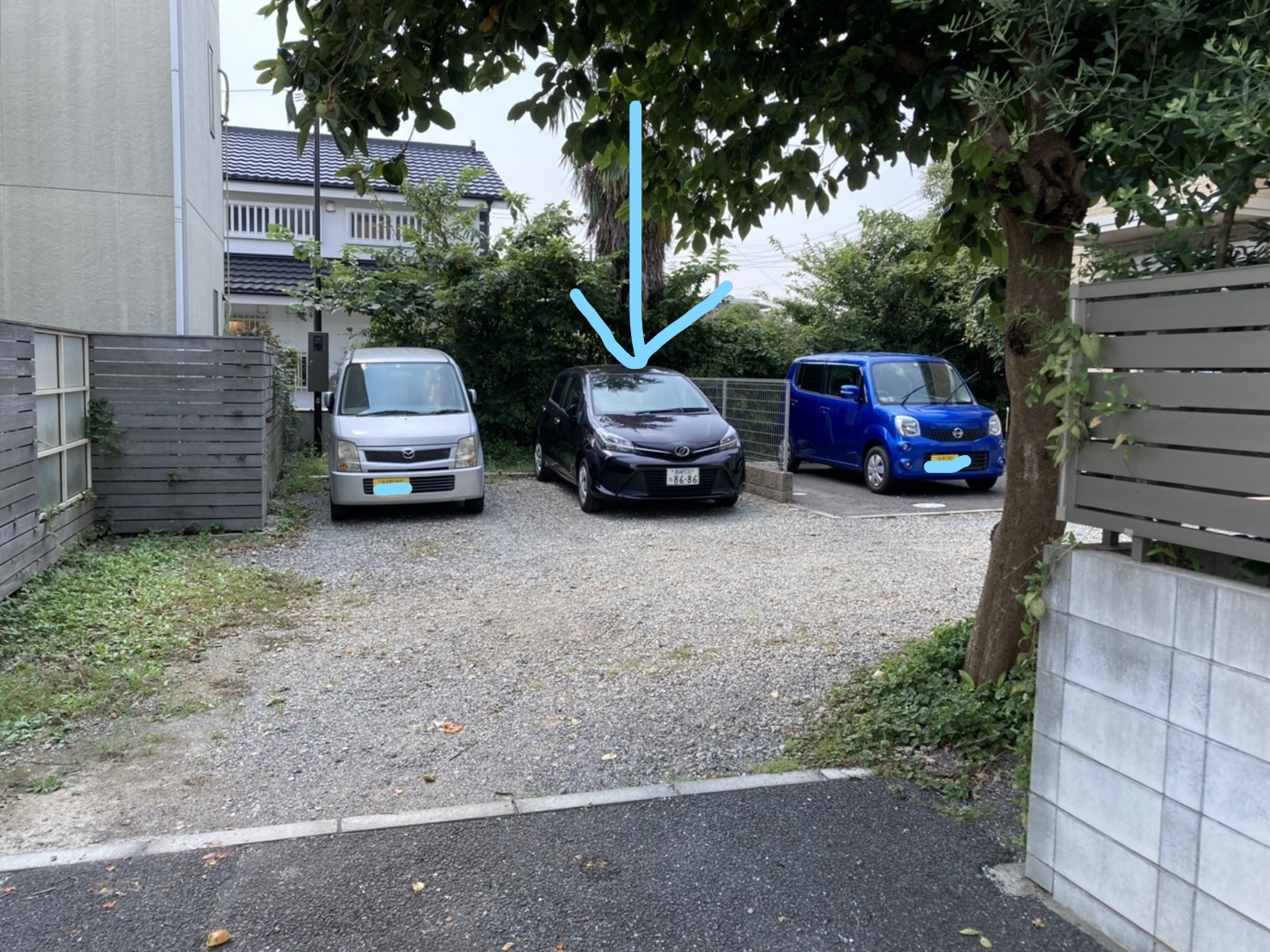 ※非常に入りにくい場所ですので、上記写真の駐車スペースで切り返しを行った後バックで駐車すると出るときに楽です。十分お気をつけてご利用なさってください。奥に入ったところの真ん中のスペースが当院の駐車場になります。